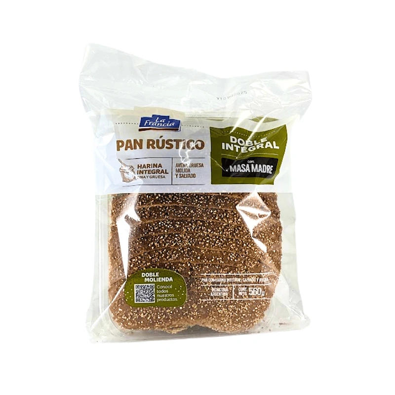Elaborado con masa madre, harina integral fina y gruesa. Además cuenta también con avena gruesa molida y salvado.